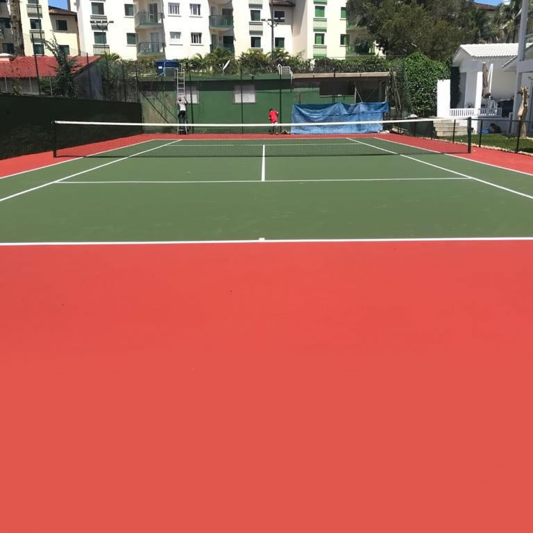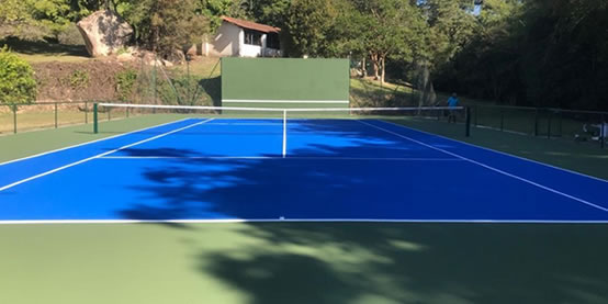 Construimos quadras de tênis e quadras poliesportivas especialmente desenvolvidas para condomínios, clubes, hotéis e residências. Contando com o acabamento CUSHION, com uma camada integrada de borracha, oferecendo melhor amortecimento e qualidade para o seu jogo.